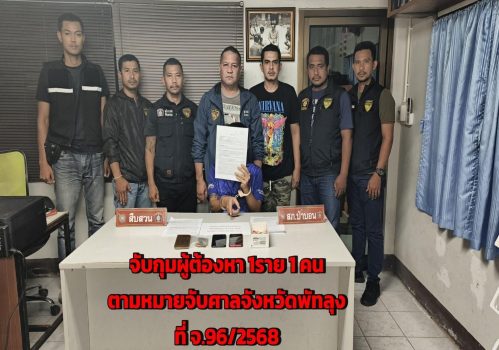 วันที่ 7 มีนาคม 2568 เวลา 19.00 น. จับกุมผู้ต้องหา 1 คน ตามหมายจับศาลจังหวัดพัทลุง ที่ จ.96/2568 ลงว