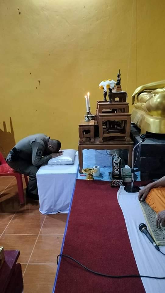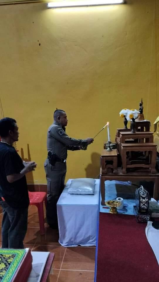 วันที่ 16 พ.ค.2566 เวลา 19.00 น. ภายใต้การอำนวยการของ พ.ต.อ.สนธยา ธูปทอง ผกก.สภ.ป่าบอน สั่งการให้ พ.ต.ท.สมชาย ช่วยบำรุง รอง.ผกก.สอบสวนฯ พ.ต.ท.พงษ์สั่น โภชากรณ์ รอง ผกก.ป.ฯ พ.ต.ท.ปราโมทย์ ขวัญเมือง สวป.ฯและแม่บ้านตำรวจ ฟังพระสวดพระอภิธรรมศพคุณแม่ชุม นุ้ยแก้ว อายุ 98 ปี ณ วัดทุ่งขุนหลวงนิมิต ต.หารเทา อ.ปากพะยูน จ.พัทลุง