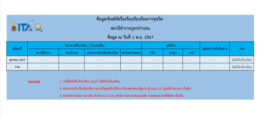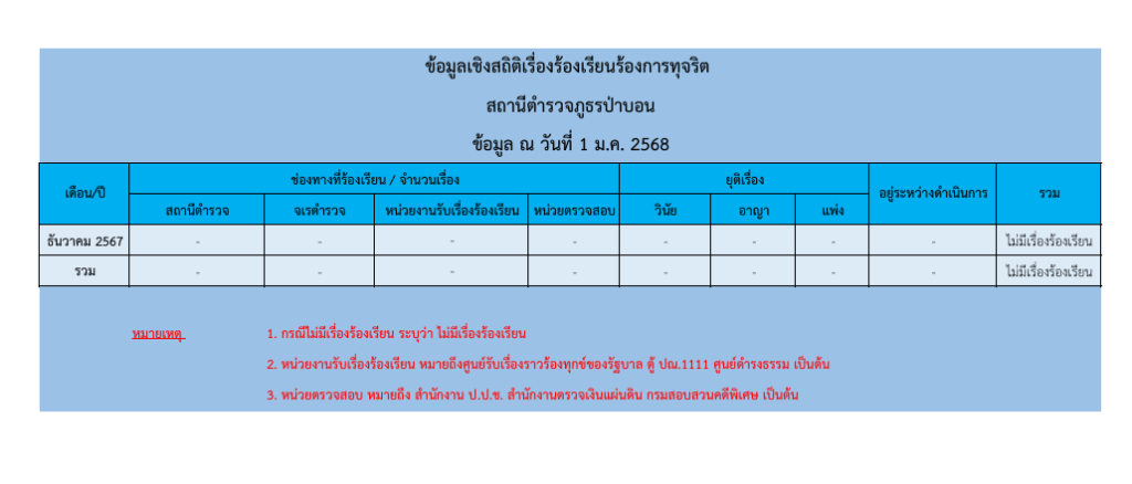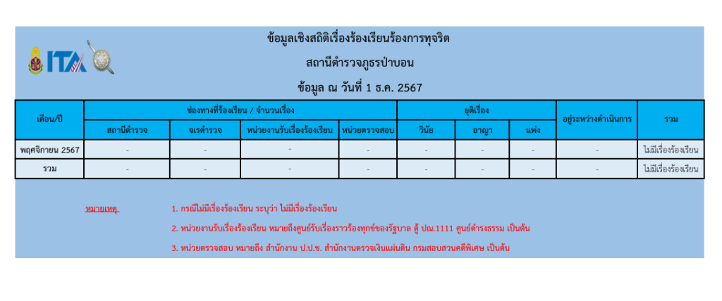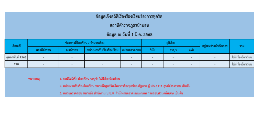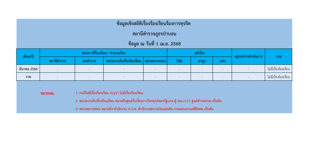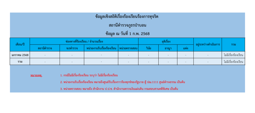 ข้อมูลเชิงสถิติเรื่องร้องเรียนการทุจริต