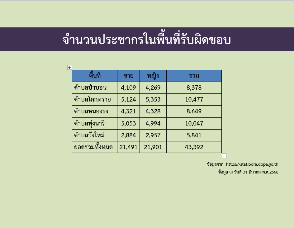 ข้อมูล ณ วันที่ 31 มีนาคม 2568