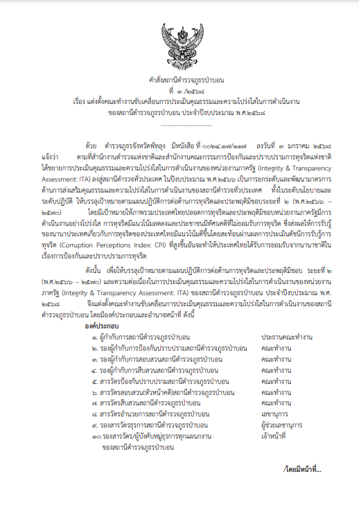 คำสั่งแต่งตั้งคณะทำงานขับเคลื่อน และกำกับติดตามการประเมินคุณธรรม