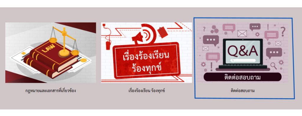 เมนู ช่องทางการถาม-ตอบ/รับฟังความคิดเห็น อยู่บริเวณหน้าแรกของเว็บไซต์
